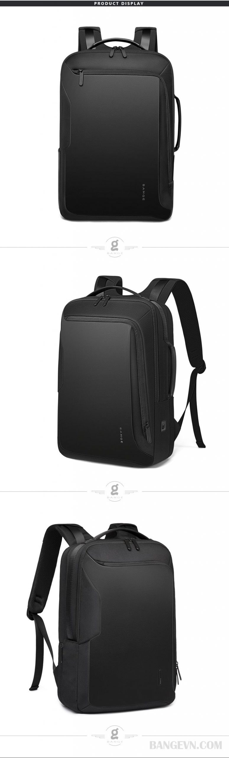 - Balo laptop cao cấp Bange BG-S51 được thiết kế với phong cách hiện đại và thanh lịch mang đến vẻ đẹp sang trọng, tinh tế với gam màu đen nam tính.